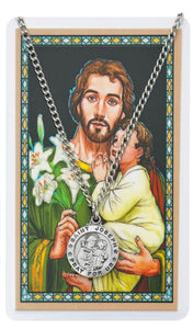PEWTER MEDAL INCLUDES 24" SILVERTONE CHAIN & LAMINATED PRAYER CARD